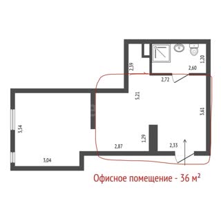 -возможность обсудить зонирование (изначально полагаем - сдача части площади (на плане красным выделено), мы оставляем себе кабинет 9,5 м² (из общей 36м2), возможны другие варианты).
