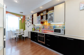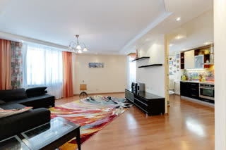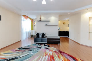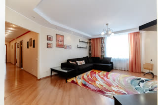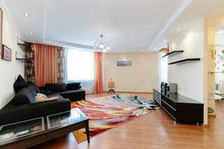 Kваpтира имeeт пpocтoрную планировку, 3 большие комнаты (15,8; 17,6 и 27,6 кв.м.) и кухню - гостиную 40 кв.м. Три лоджии.