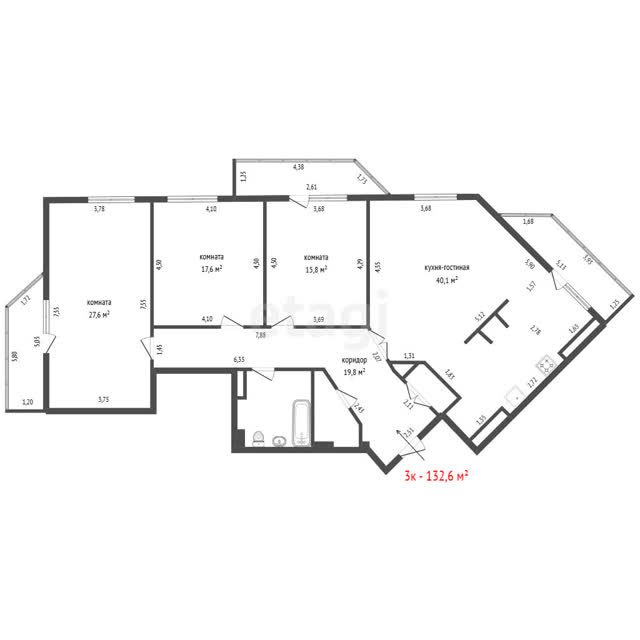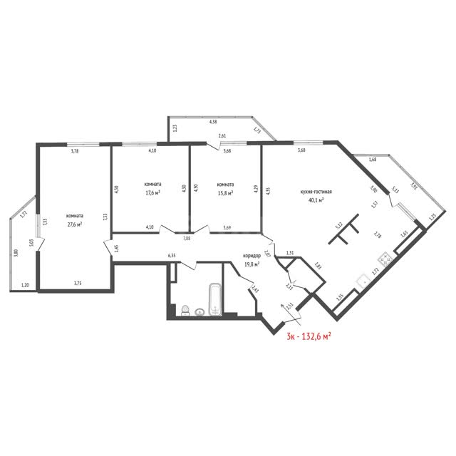 - Общая площадь132.6 м²