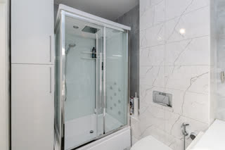 Остается в квартире: Бытовая техника (два телевизора самсунг, саундбар, индукционная плита, встроенные духовой шкаф, свч, подогреватель посуды, рожковая кофе-машина как в кофейне, холодильник, посудомоечная машина, стиральная машина) и вся мебель, что на фотографиях, останется новым жильцам. Душевая кабина с функцией хаммама, музыкой и светом.