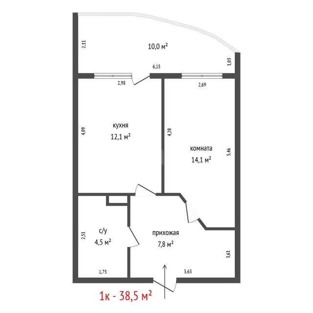 - Общая площадь38.5 м²