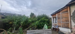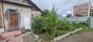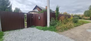 Дом построен на земельном участке 10 соток, который можно легко приватизировать. Огороженная территория, есть места для парковки, свой гараж, 2 удобных заезда через ворота. На территории перед домом растут яблоневые деревья , кусты ежевики.