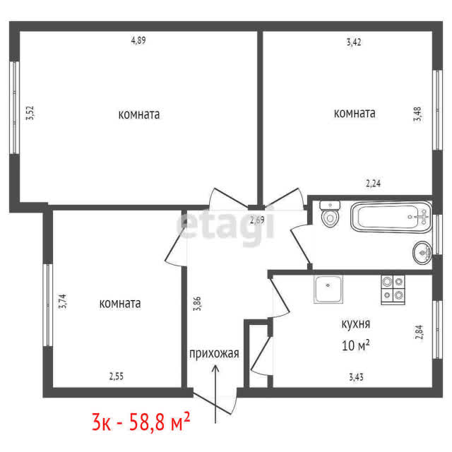 - Общая площадь58.8 м²
