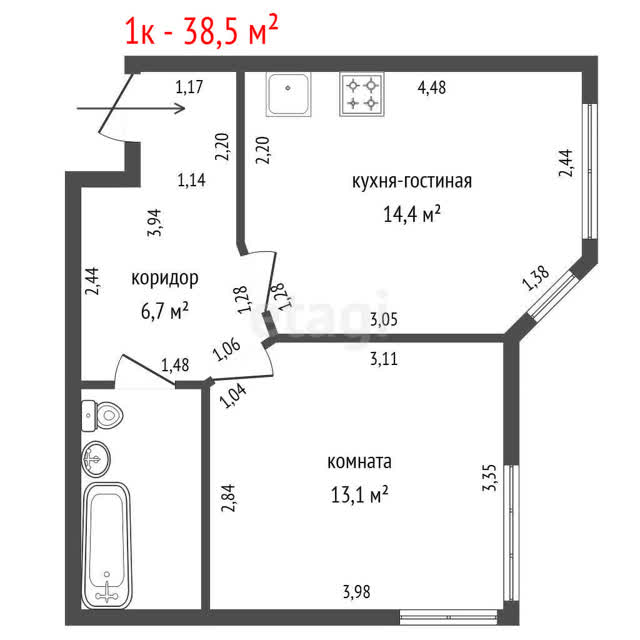 Фактически это евродвушка с большой кухней гостинной и спальней. Оригинальная планировка, в каждой по два окна, в жару будет чем дышать.