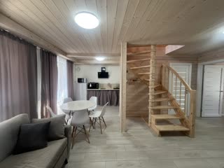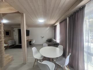 Внутри дома вас ждет идеально организованное пространство. Просторная кухня-гостиная грамотно разделена на функциональные зоны — для отдыха, общения и семейных ужинов. Прямой выход на террасу делает это пространство особенно живым и удобным. Панорамные окна наполняют дом светом и создают ощущение свободы.